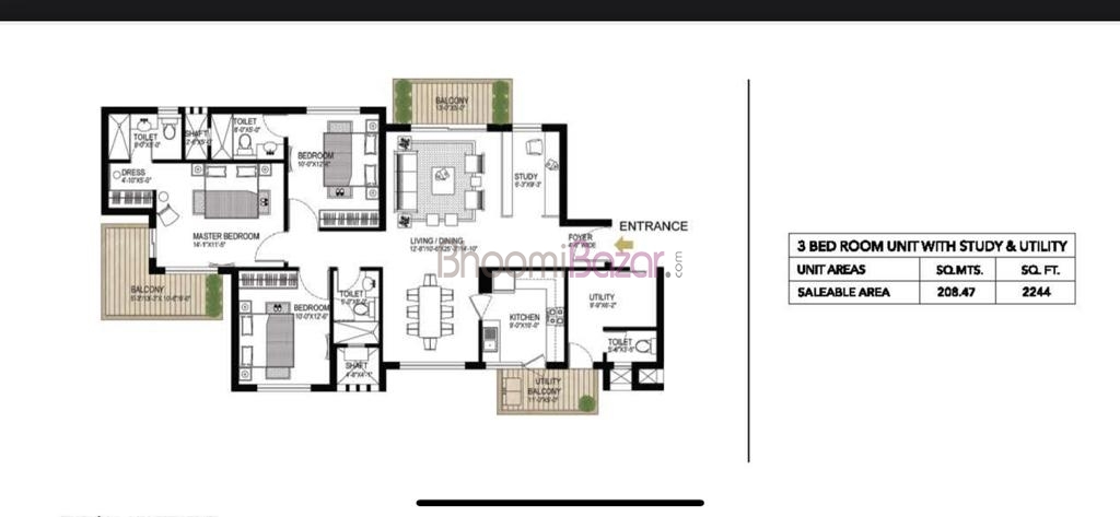 | 3 BHK+Servant+ST | 2244 Sq.ft | 1720 Sq.ft | Price on Call | View |