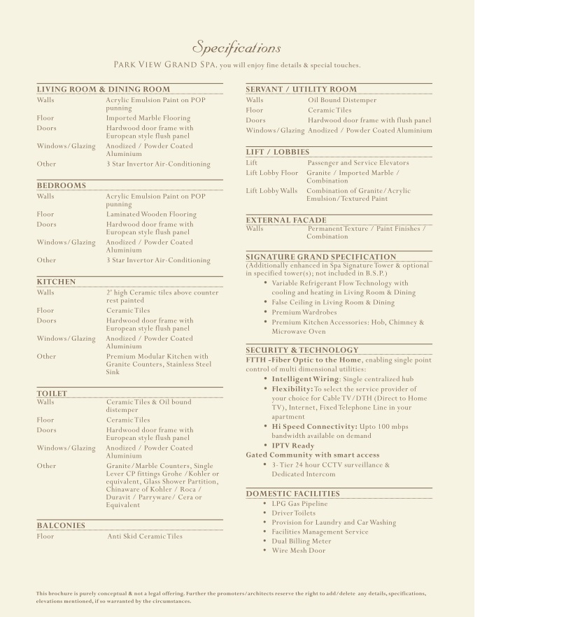 The Park View Grand Spa offers spacious 3 & 4 bedroom residences in Sector – 81, Gurgaon, which will indulge you with all world-class features & amenities like fully functional state-of-the-art club house, shopping avenues, multiplex, eateries, schools, manicured gardens, hotels, commercial destinations and hospitals all within proximity. The minimum size of 3 BHK flat in Grand Spa is 2660 Sq.ft. and 4 bhk flat is 3185 Sq.ft.