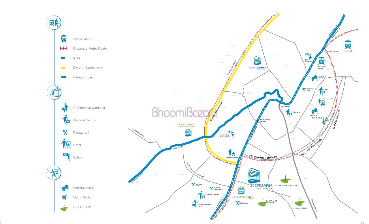 Godrej Aria, where the spectacle of the Aravallis forms a lifetime canvas and life is perfectly complemented by seamless connectivity to all the addresses important to you. Godrej Aria is located very close to NH8 on New Golf Course Road. Homes here offer a host of advantages that makes both leisure and travel simpler, with proximity to golf courses, restaurants and hotels like Hyatt Regency. The IFFCO Chowk, the commercial hub of Gurgaon, is also located close by. Life here is a vacation forever