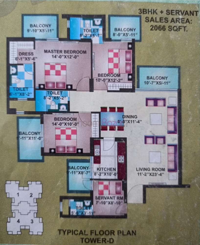 • Property Plan: 3 BHK+SR