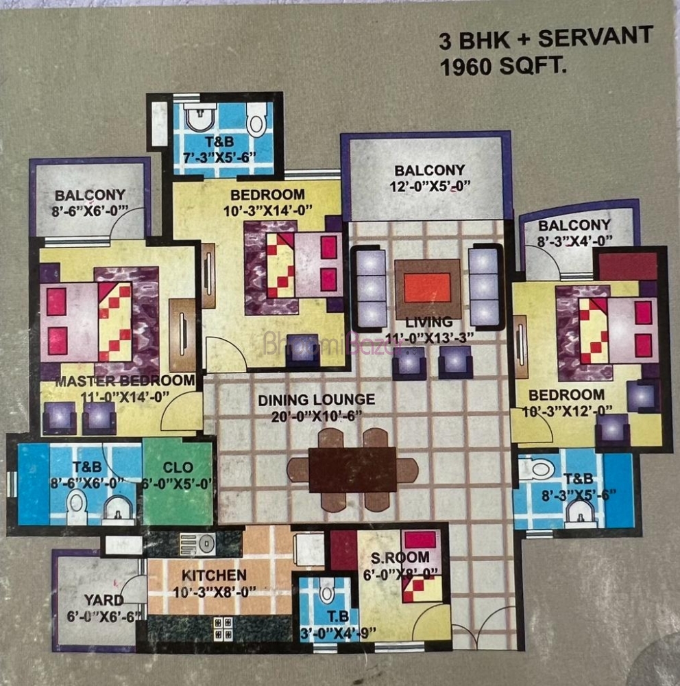 • Property Plan: 3 BHK+SR