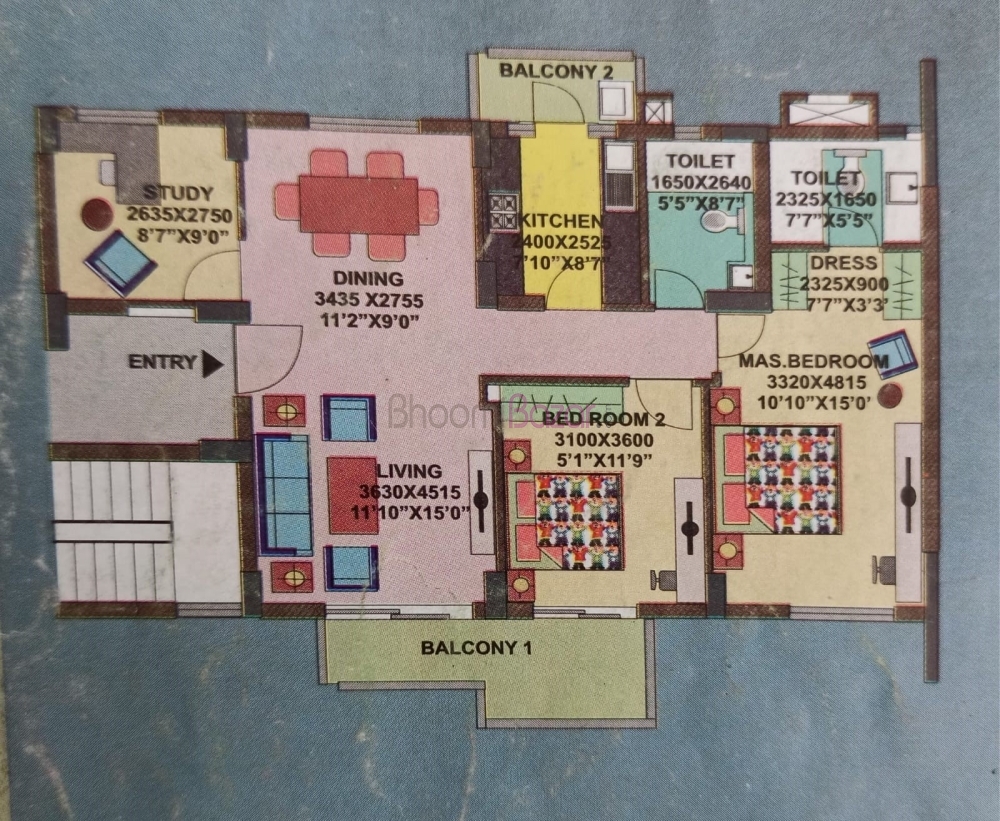 • Property Plan: 2 BHK+Study room